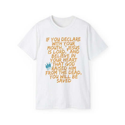 Romans 10:9 Christian Faith Unisex Cotton Tee, Bible Verse T-Shirt for Men and Women
