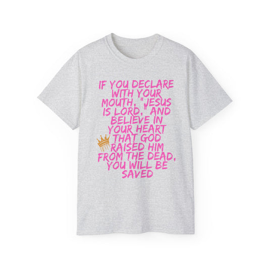 Romans 10:9 Ultra Cotton Tee, Inspirational Christian T-Shirt, Bible Verse Tee
